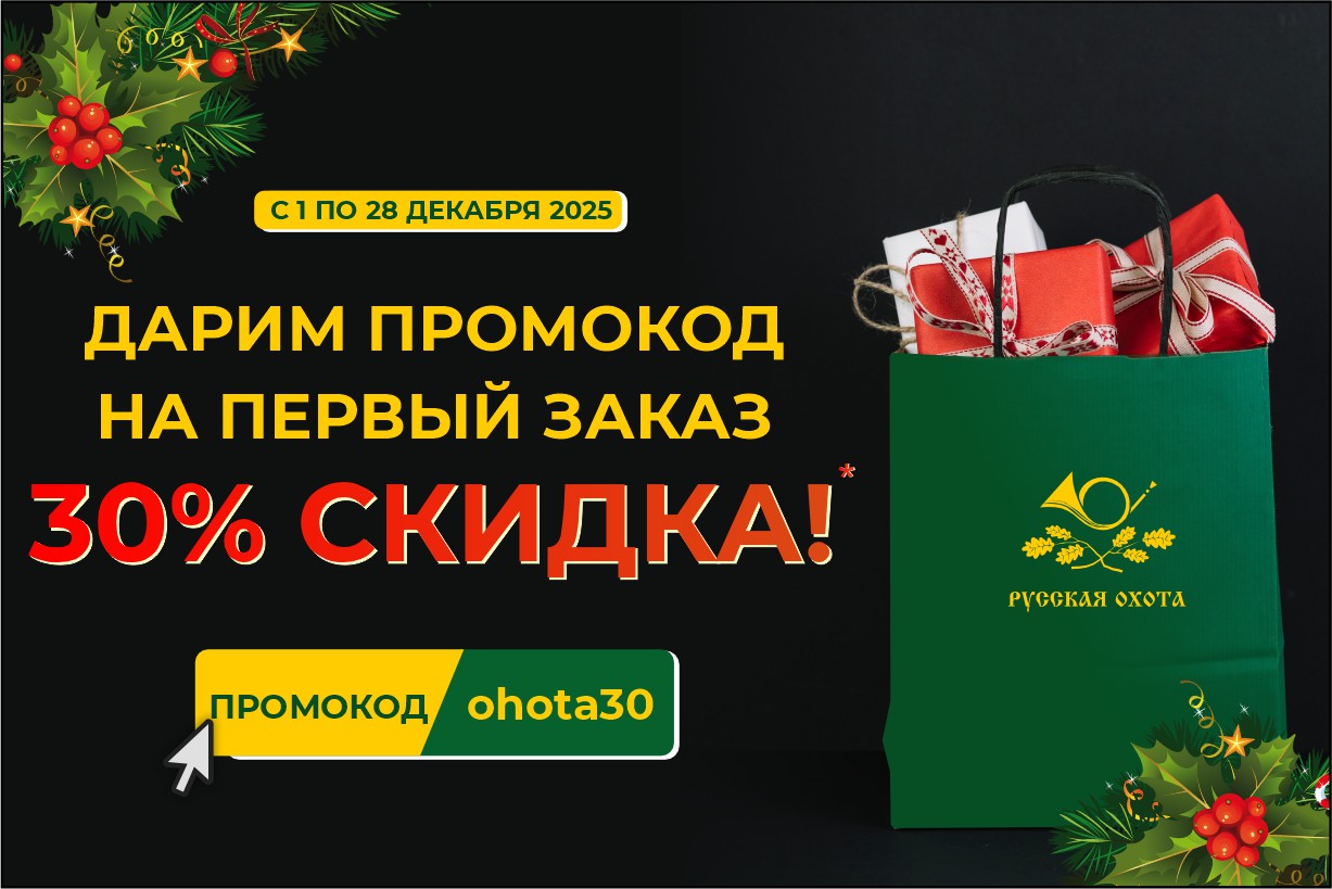 Условия акции «Скидка 30% по промокоду на первую покупку для новых клиентов» в интернет-магазине Русская охота.